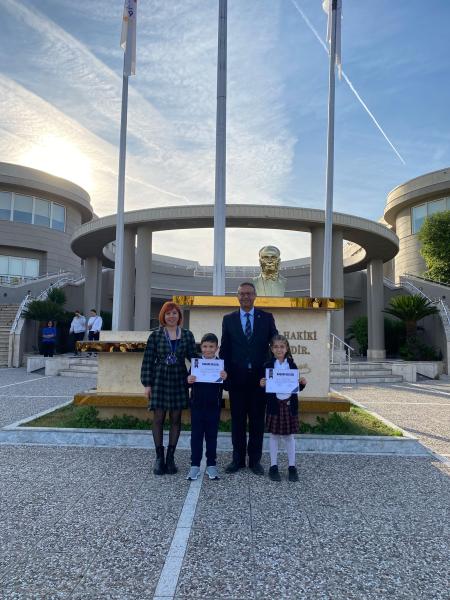 Özel Antalya Koleji Okulları Lara (Merkez) Kampüsü İlkokul 1. sınıf öğrencilerinden Eliz Eren ve Mehmet Ata Yalçın, geleneksel olarak her yıl 29 Ekim Cumhuriyet Bayramı
