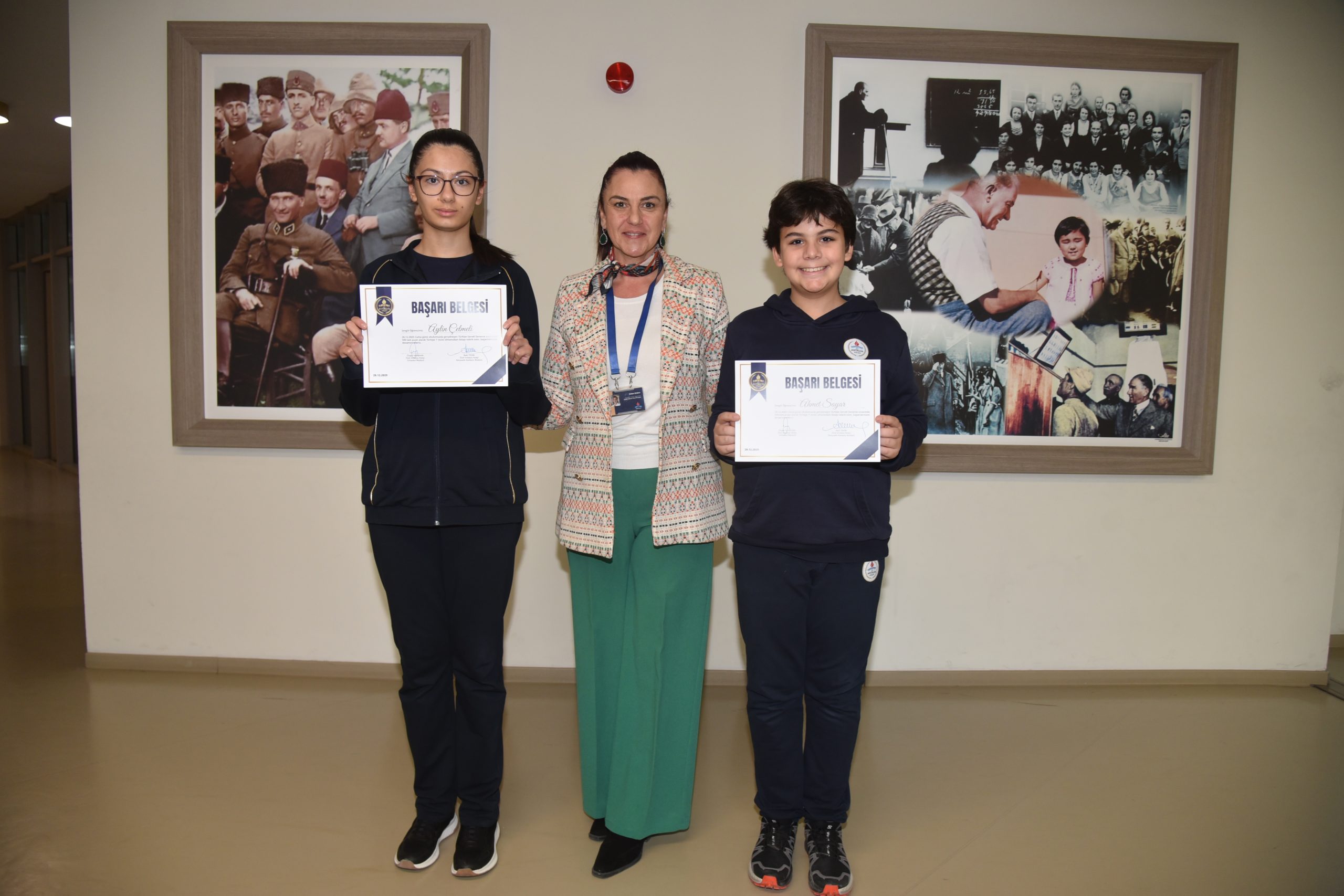 Özel Antalya Koleji Okulları Konyaaltı Kampüsü ortaokul 8. sınıf öğrencilerinden Aylin Çelmeli ve Ahmet Sayar, 26 Aralık 2025 Cuma günü okulda gerçekleşen Türkiye geneli deneme