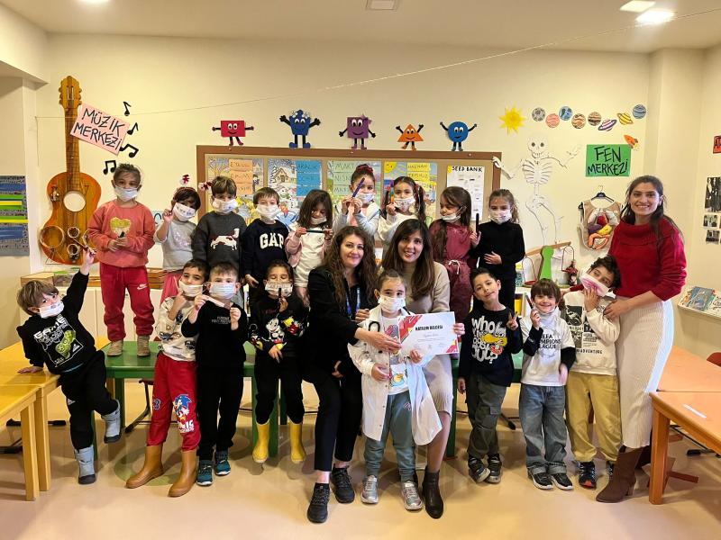 Miniklere sağlıkla ilgili temel bilgiler, yaşlarına uygun ve anlaşılır bir dille aktarılırken; maske takmanın, el yıkamanın ve sosyal mesafe kurallarına uymanın önemi vurgulandı. Öğrenciler, ayrıca kendi maskelerini boyayarak etkinliğe yaratıcılık kattı.
