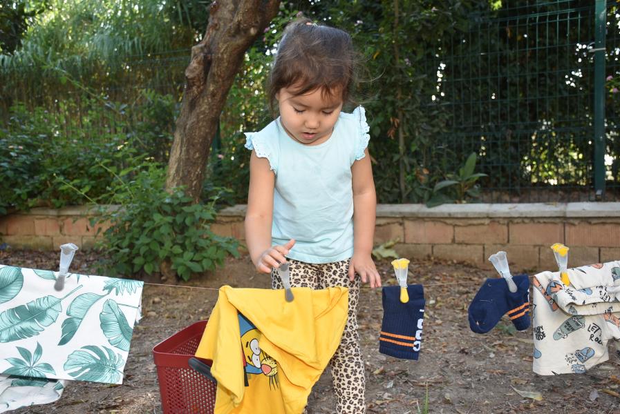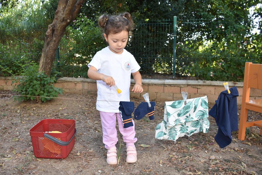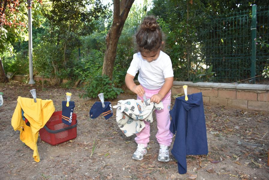 Minik eller; mandallarla çamaşır asarken hem el-göz koordinasyonlarını geliştirdi hem de günlük yaşam becerilerini pekiştirdi.