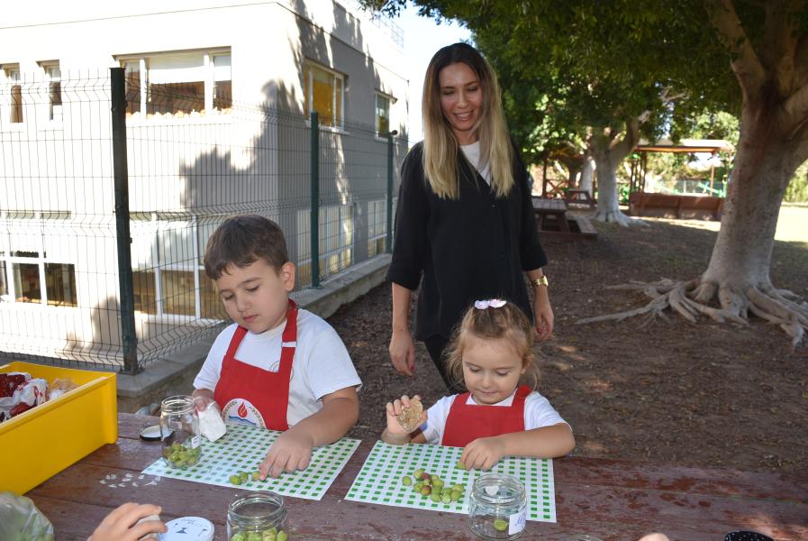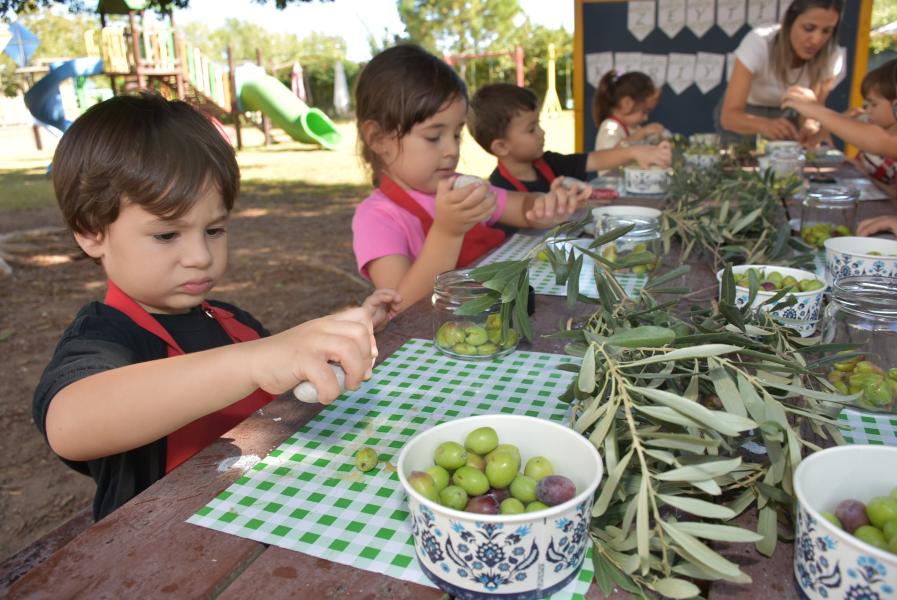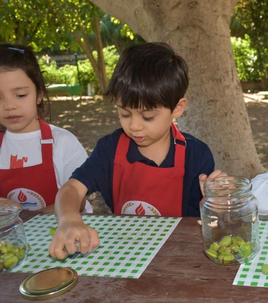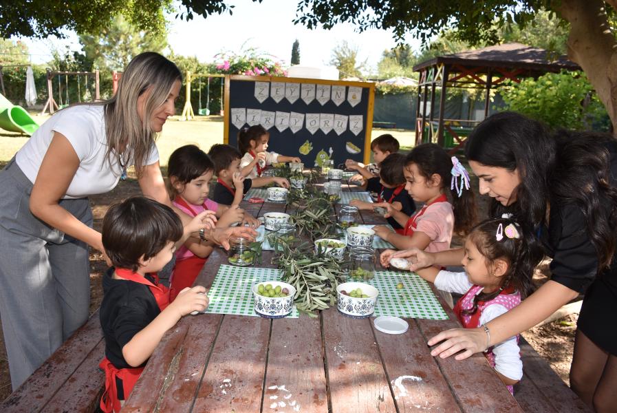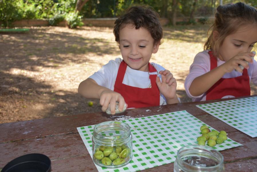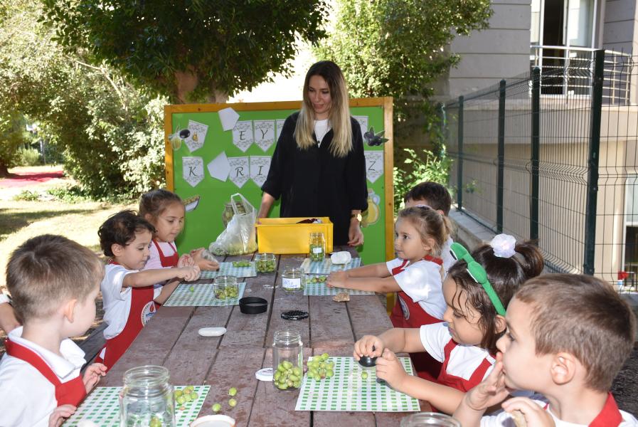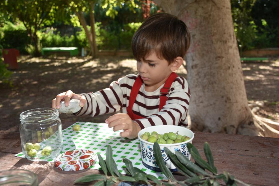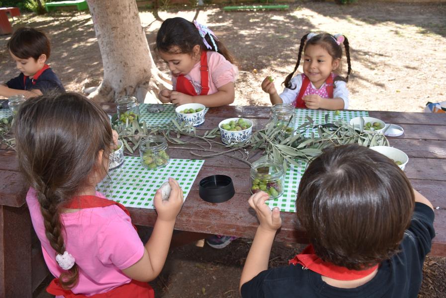 Aile katılımı ile kış hazırlıkları kapsamında zeytin kurmayı öğrenen 5 yaş grubu öğrencileri, zeytinleri taşla elde tek tek zarar vermeden kırarak kavanoza doldurdu.
