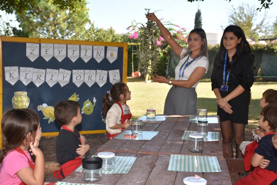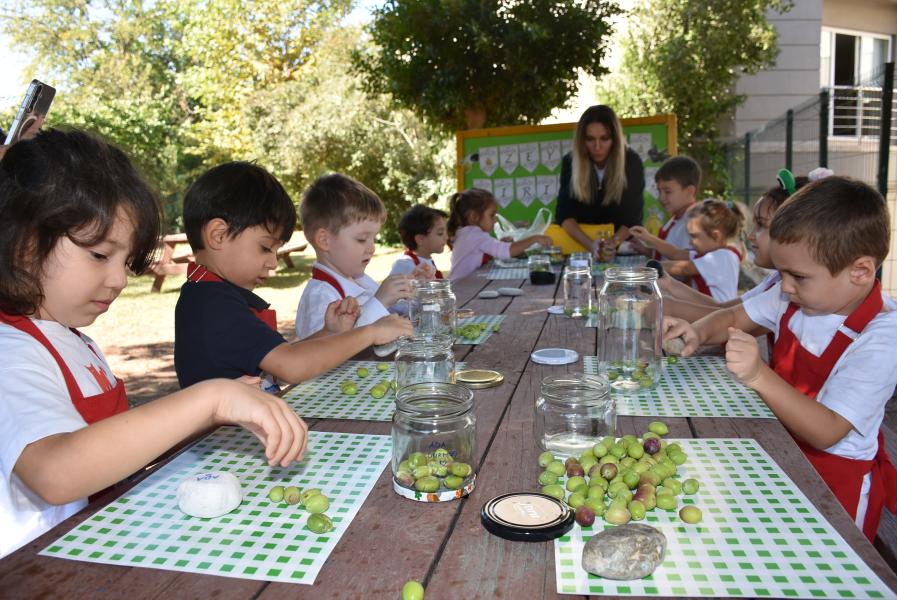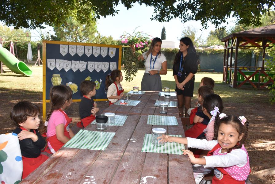 Öğrenciler kendi zeytinlerini yapmanın keyfini yaşarken; aynı zamanda zeytinin çeşitli faydalarını ve zeytinlerin dalından toplandıktan sonra sofralarımıza gelinceye kadar uzun ve zahmetli bir yolculuğunu öğrendi.