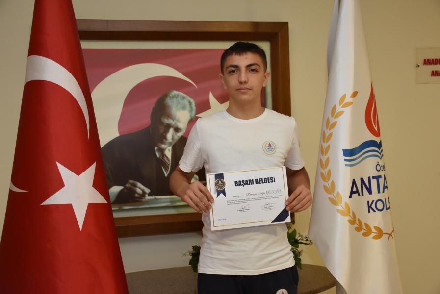 Özel Antalya Koleji Okulları Lara (Merkez) Kampüsü Anadolu Lisesi 10. sınıf öğrencilerinden Ramazan Tuğra Çetin, 26-28 Aralık 2025 tarihlerinde düzenlenen Muaythai Antalya İl Seçmelerinde, üst genç erkekler 16-17 yaş 67 kg’da Antalya 1’incisi oldu.