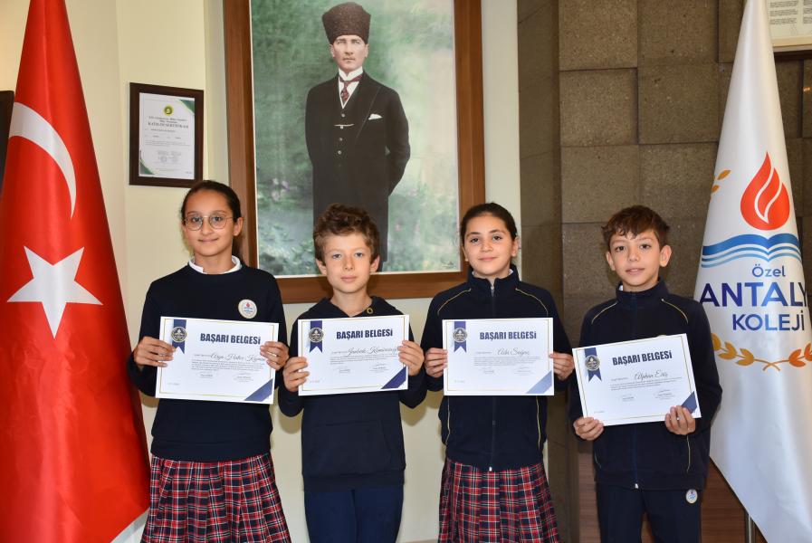Özel Antalya Koleji Okulları Lara (Merkez) Kampüsü ortaokul 5. sınıf öğrencilerinden 4 öğrenci, katıldıkları 8-10 Kasım 2025 tarihlerinde düzenlenen Atatürk’ü Anma ve 9-10-11-12 Yaş Ulusal Gelişim Ligi Yüzme Yarışlarında bir çok derece elde etti.